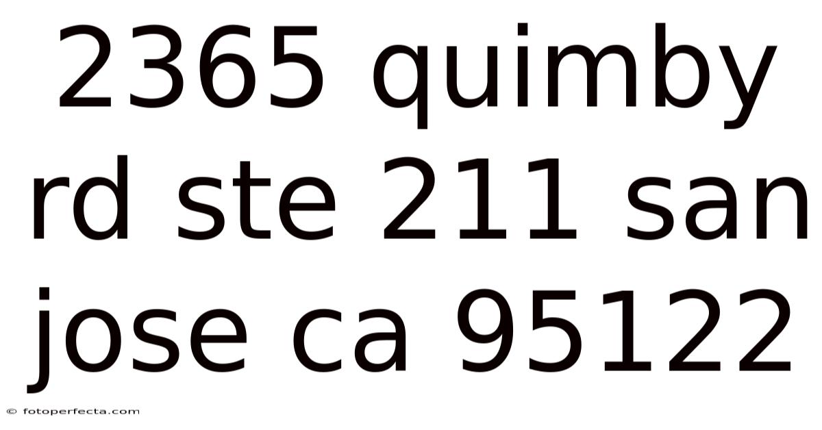 2365 Quimby Rd Ste 211, San Jose, CA 95122 is a specific address located in the heart of Silicon Valley, a region renowned for its technological innovation and dynamic business environment. While the address itself may not be widely recognized by the general public, it represents a point of interest within a bustling metropolitan area that has shaped the global tech landscape. This article explores the significance of this location, its potential role in the community, and the broader context of San Jose as a hub for innovation and growth.