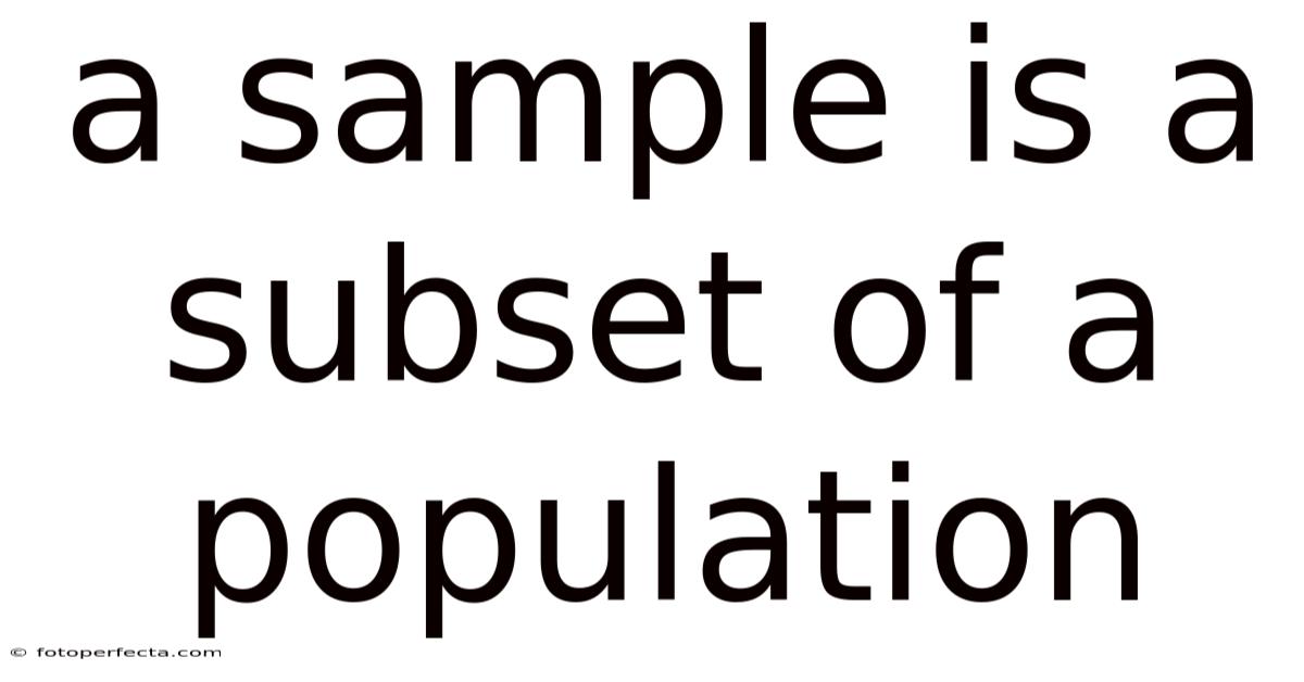 Imagine you are in a kitchen, stirring a large pot of soup. So naturally, the entire pot is the population. This simple, everyday action captures the profound statistical principle that a sample is a subset of a population. So instead, you take a single spoonful. Practically speaking, it is the fundamental concept that allows us to make reliable statements about vast, often inaccessible groups by studying a manageable, carefully chosen portion. Even so, to check if it’s seasoned correctly, you don’t—and shouldn’t—drink the entire pot. On top of that, that spoonful is a sample. From predicting election outcomes to ensuring drug safety, the integrity of our conclusions hinges entirely on how well this subset represents the whole Most people skip this — try not to. Turns out it matters..
