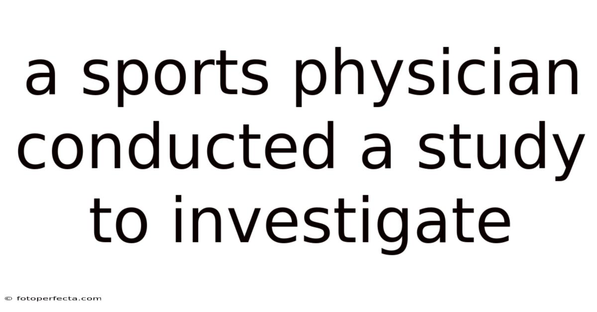 A Sports Physician Conducted A Study To Investigate