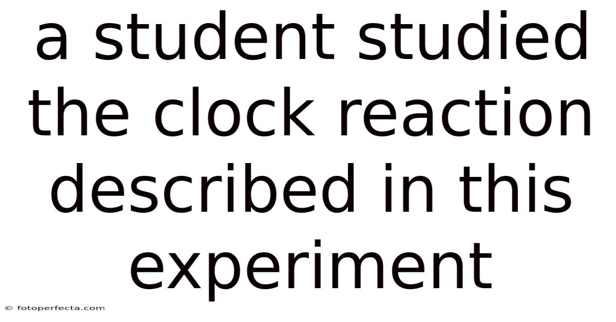 The clock reaction is a classic demonstration of chemical kinetics that captures the imagination of students and teachers alike. When a student investigates this phenomenon, they uncover a wealth of concepts: reaction mechanisms, rate laws, the role of catalysts, and the power of careful observation. In real terms, in this experiment, a seemingly ordinary mixture of reactants suddenly turns from clear to intensely colored after a predictable pause—like a clock striking the hour. Below is a step‑by‑step guide to designing, executing, and interpreting a clock‑reaction experiment, along with the science that makes it so compelling Less friction, more output..