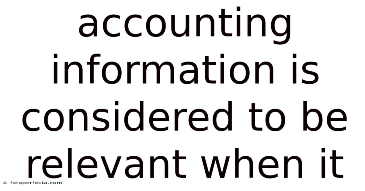 To keep it short, accounting information is considered to be relevant when it has the capacity to make a difference in the decisions made by its users. So this relevance is achieved through predictive and confirmatory value, timeliness, and materiality. It requires a careful balance of detail and focus, an understanding of user needs, and adherence to established reporting standards. As the business environment evolves, so too does the concept of relevance, with new types of information gaining importance in the eyes of stakeholders. When all is said and done, relevance ensures that accounting information serves its primary purpose: to support informed and effective decision-making.