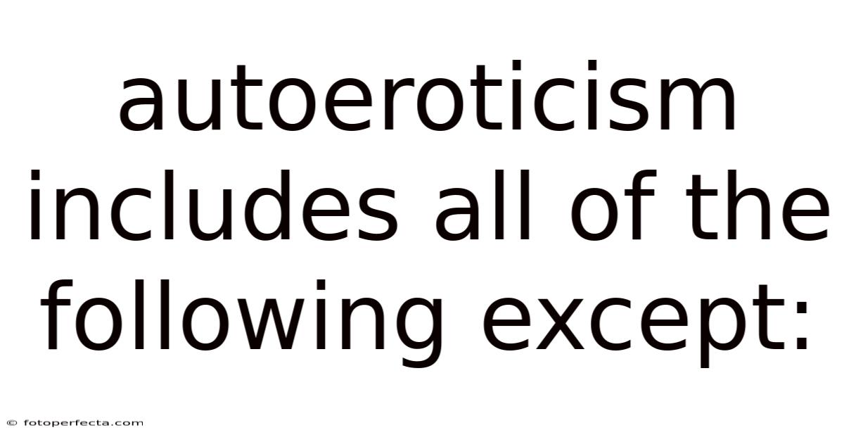 Autoeroticism includes all of the following except sexual intercourse with another person, a distinction that preserves the term’s core meaning of self‑contained sexual expression. By recognizing the wide array of solo activities—ranging from manual stimulation to sensory play—readers can appreciate the diversity of human sexuality while clarifying a common misconception. This nuanced understanding not only satisfies academic curiosity but also empowers individuals to explore their own bodies safely and confidently, contributing positively to overall sexual well‑being Worth keeping that in mind..