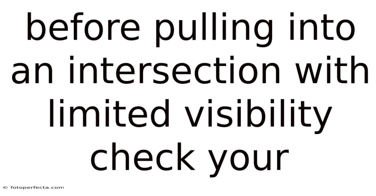 That heart-stopping moment at a blind corner—where a building, row of bushes, or a parked truck completely blocks your view of oncoming traffic—is one of the most dangerous scenarios on the road. Day to day, the automatic, often subconscious, impulse is to creep forward, hoping to gain a better vantage point. This is where a single, deliberate ritual can mean the difference between a near-miss and a catastrophic collision. **Before pulling into an intersection with limited visibility, check your position, your surroundings, and your assumptions.Because of that, ** This isn't just a suggestion; it's a non-negotiable safety protocol that transforms a moment of high risk into a controlled, predictable maneuver. Mastering this check is about reclaiming agency in a situation designed to strip it from you.
