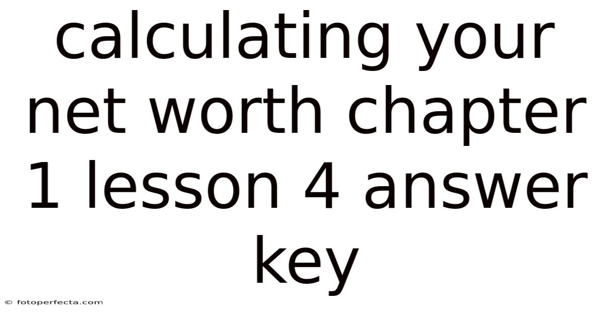Calculating Your Net Worth Chapter 1 Lesson 4 Answer Key
