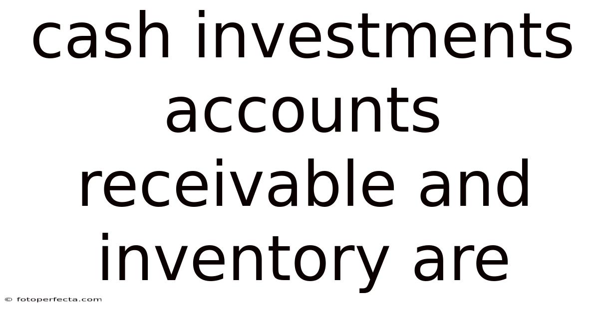 Cashinvestments accounts receivable and inventory are fundamental components of a business’s financial framework, each playing a distinct yet interconnected role in ensuring operational efficiency and financial stability. Understanding how cash, investments, accounts receivable, and inventory interact is crucial for anyone involved in finance, accounting, or business management. Because of that, these elements are not just numbers on a balance sheet; they represent the lifeblood of a company’s ability to manage resources, meet obligations, and sustain growth. This article explores their definitions, significance, and the dynamics that govern their management, providing a comprehensive overview of their importance in the business world Simple as that..