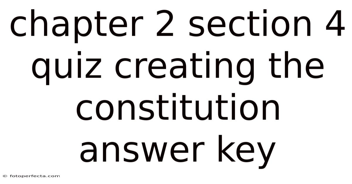 Creating a quiz answer key for a section focused on the creation of the Constitution is a critical task for educators aiming to assess student understanding of this foundational historical event. Constitution, requires careful attention to key concepts such as the weaknesses of the Articles of Confederation, the Constitutional Convention, the compromises made during the drafting process, and the eventual ratification by the states. S. Worth adding: a well-structured quiz answer key not only helps in evaluating student performance but also reinforces their grasp of the historical significance and complexities involved in forming the nation’s governing document. Chapter 2 Section 4, which typically covers the drafting and ratification of the U.This article provides a detailed breakdown of how to develop an effective quiz answer key for this specific section, ensuring clarity, accuracy, and educational value.