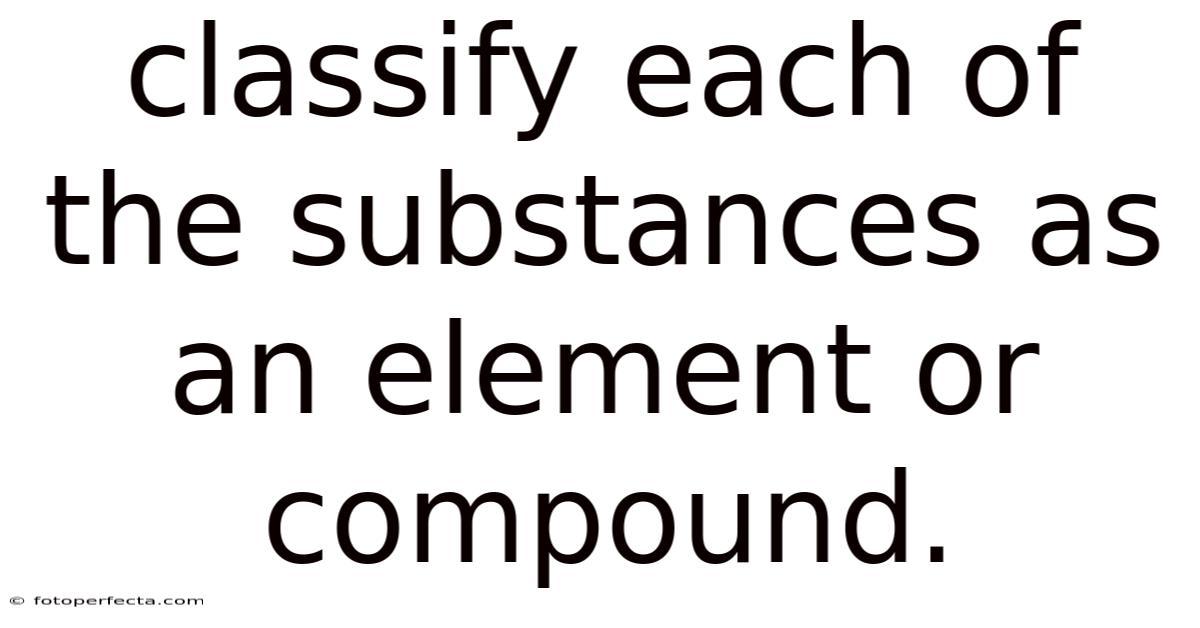 To classifyeach of the substances as an element or compound, you must first understand the fundamental definitions that distinguish these two categories of matter. This article provides a clear, step‑by‑step guide, scientific background, and practical examples that will help students, teachers, and anyone interested in chemistry master the classification process. By the end, you will be able to look at any substance and confidently label it as an element or a compound based on its composition and chemical structure Not complicated — just consistent..