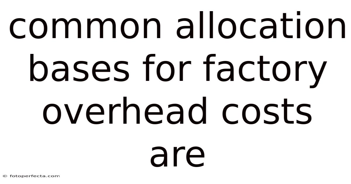 Understanding common allocation bases for factory overhead costs is fundamental for any business engaged in manufacturing. This process of assignment is known as cost allocation, and the metric used to distribute the overhead is called the allocation base. Because these expenses do not have a direct relationship with individual products, companies must employ systematic methods to assign them to products. That said, factory overhead, often referred to as manufacturing overhead, encompasses all the indirect costs required to run a production facility that cannot be directly traced to a specific unit of product. Day to day, these costs include items such as rent, utilities, depreciation of machinery, and indirect labor. Selecting the appropriate common allocation bases for factory overhead costs is critical for accurate financial reporting, pricing decisions, and operational efficiency Most people skip this — try not to..