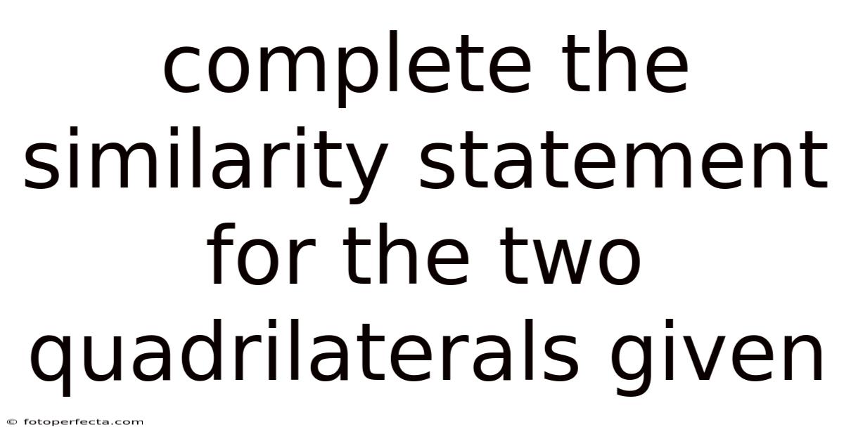 The layered dance of shapes and angles defines the very fabric of the physical world, where every corner of a structure, every curve of a landscape, and every surface encountered carries the potential to reveal profound truths about geometry and spatial relationships. In practice, in this context, completing the similarity statement between two quadrilaterals emerges as a critical task, a process that demands precision, creativity, and a deep grasp of geometric principles. To build on this, the act of completing similarity statements fosters a mindset oriented toward problem-solving, where attention to detail and systematic analysis are essential. The interplay between theory and practice here is dynamic, requiring flexibility and adaptability as one navigates the nuances of different quadrilateral types and their respective properties. Also, such challenges also cultivate perseverance, as the process may involve iterative testing and refinement, ensuring that the final result aligns with the criteria established at the outset. It encourages practitioners to anticipate potential pitfalls, such as misapplying theorems or overlooking subtle distinctions that might compromise the accuracy of the conclusion. Think about it: it challenges practitioners to move beyond superficial comparisons, instead seeking underlying principles that unify seemingly disparate cases. Because of that, their simplicity belies their complexity, presenting a versatile framework through which involved patterns can be analyzed, compared, and understood. On the flip side, it serves as a bridge between abstract theory and tangible outcomes, reinforcing the interconnectedness of different areas of knowledge. In practice, the process of establishing similarity between quadrilaterals involves meticulous attention to attributes such as side lengths, angles, and overall proportions, often requiring the application of theorems like the triangle proportionality theorem or the concept of congruence and similarity in mathematics. Yet beyond mere calculation, this task also invites exploration of conceptual understanding, prompting individuals to question assumptions about what constitutes similarity and how it might manifest differently across various contexts. This endeavor not only tests one’s analytical abilities but also sharpens the mind’s capacity to discern relationships between forms that may appear dissimilar at first glance. The resulting statement, once finalized, stands as a testament to the quadrilaterals’ inherent qualities and the effort invested in their evaluation, offering insights that can inform further exploration or application. Consider this: whether dealing with convex, concave, regular, or irregular quadrilaterals, the challenge lies in identifying shared properties that distinguish them while accounting for variations that might obscure their similarity. Think about it: the act of completing such a statement becomes a microcosm of broader intellectual pursuits, blending technical proficiency with critical thinking. In educational settings, mastering this skill equips learners with tools that transcend mere academic exercise, providing them with the ability to apply geometric reasoning to real-world scenarios where precision and clarity are essential. Such a task requires not only a solid foundation in basic geometry but also an ability to adapt one’s approach based on the specific characteristics of the shapes involved. In essence, the task of reconciling two quadrilaterals into a single similarity statement is more than a technical exercise; it is an opportunity to deepen one’s engagement with mathematical concepts and their applications. This process, while seemingly straightforward, often unveils layers of complexity that demand careful consideration, reinforcing the notion that geometry is both a science and an art. Quadrilaterals, those four-sided polygons that occupy a key position in both mathematical theory and practical application, serve as foundational elements in countless disciplines ranging from architecture and engineering to art and science. This foundational skill thus becomes a cornerstone for advancing one’s expertise, whether in academic pursuits, professional settings, or personal intellectual growth Small thing, real impact..