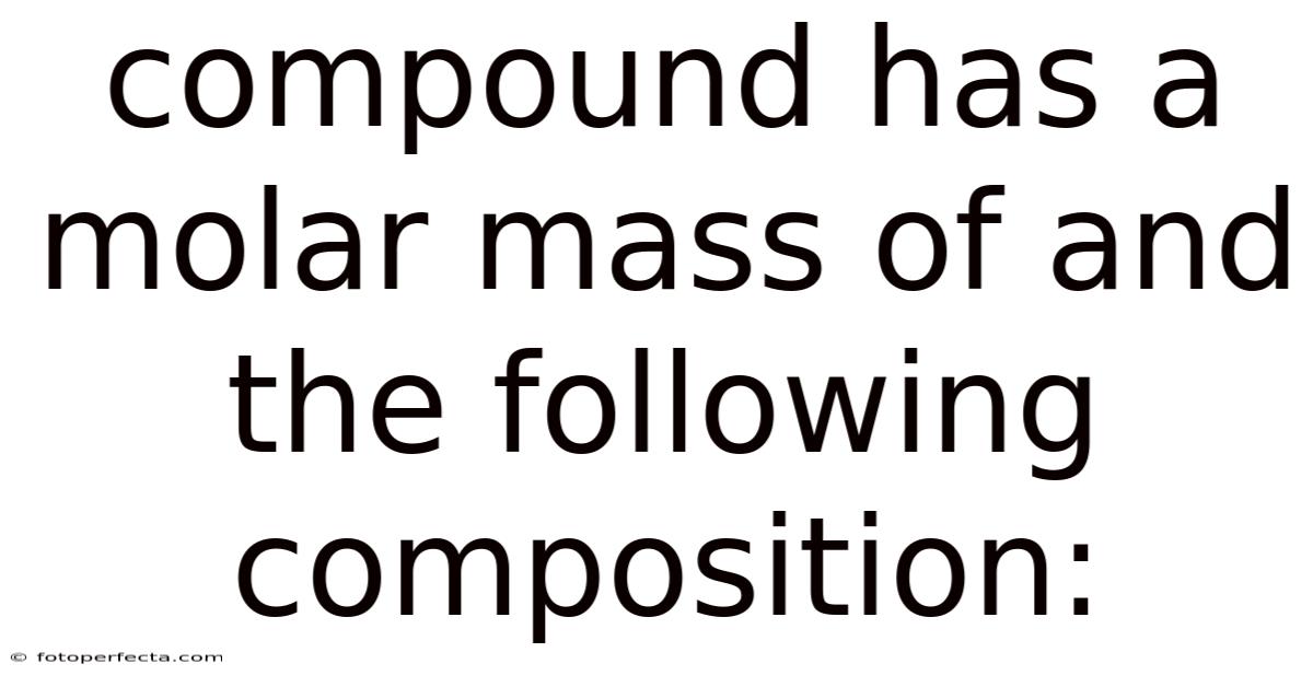 When analyzing a compound, one of the most fundamental properties to determine is its molar mass. On the flip side, the molar mass is not a standalone value; it is deeply interconnected with the compound’s composition. Together, these two aspects provide a complete picture of the compound’s identity and behavior. And the composition of a compound refers to the specific elements it contains and the ratio in which they are bonded. This value is crucial for chemical calculations, such as stoichiometry, reaction yields, and solution preparation. The molar mass of a compound is the mass of one mole of its molecules, typically expressed in grams per mole (g/mol). In this article, we will explore how the molar mass of a compound is calculated based on its composition, the significance of this relationship, and practical applications of this knowledge in chemistry But it adds up..