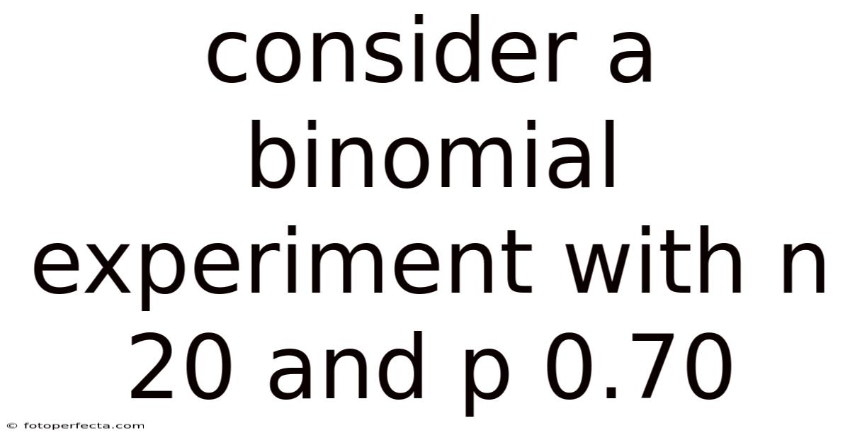 A binomial experiment with n = 20 and p = 0.70 provides a perfect, concrete lens through which to understand one of the most fundamental and widely applied probability distributions in statistics. So naturally, this scenario describes a situation with a fixed number of independent trials (20), where each trial has only two possible outcomes—often termed "success" and "failure"—and the probability of success (p) remains constant at 0. Even so, 70 for every single trial. Consider this: the random variable of interest, X, represents the total number of successes observed across these 20 trials. In real terms, analyzing this specific experiment moves beyond abstract theory, allowing us to calculate precise probabilities, understand the distribution's central tendency and spread, and visualize the likely outcomes. Whether you're assessing quality control in a manufacturing process where 70% of items pass inspection, modeling student performance on a test where each has a 70% chance of answering correctly, or evaluating a medical treatment with a 70% success rate, the binomial model with these parameters offers powerful, actionable insights Not complicated — just consistent..