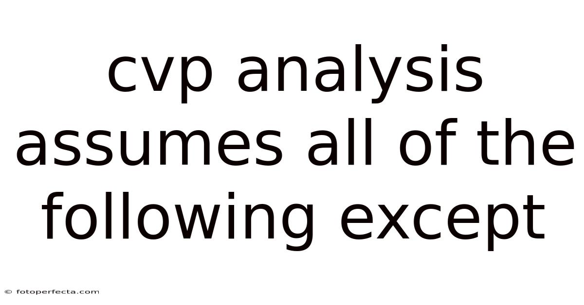CVP analysis assumes all of the following except scenarios that disrupt linear predictability between cost, volume, and profit. This framework is widely used by managers, accountants, and business students to map how changes in sales volume influence operating results. That said, its usefulness depends on accepting specific boundaries. That said, when applied correctly, it offers clarity on break-even points, margin of safety, and target income planning. Knowing what this model does not assume is just as important as knowing what it does, because overlooking exceptions can lead to costly misjudgments in real business settings Took long enough..