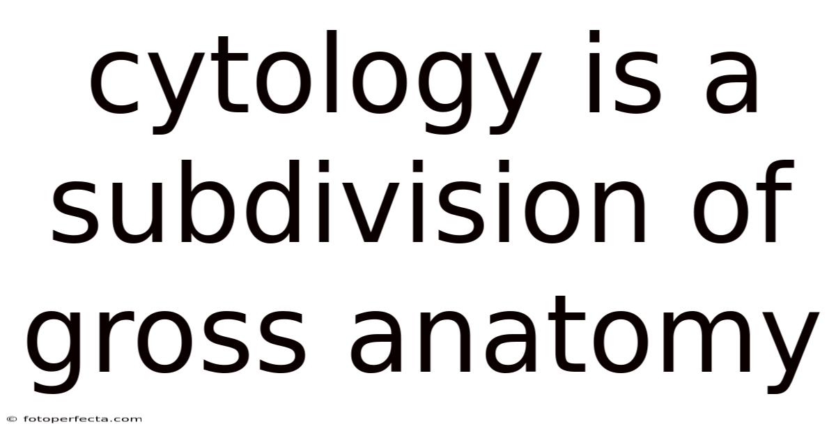 No, cytology is not a subdivision of gross anatomy. While both are branches of anatomy, cytology focuses on the microscopic study of cells, whereas gross anatomy deals with structures visible to the naked eye Nothing fancy..