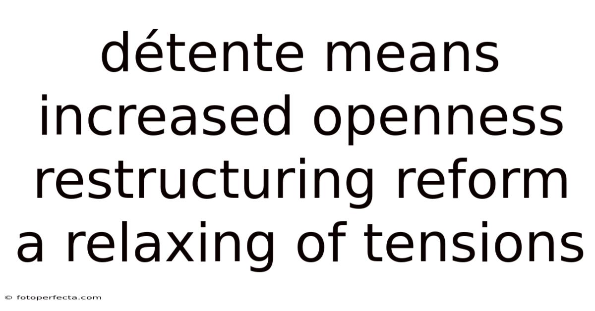 Détente: A Pathway to Openness, Restructuring, and Reform in International Relations