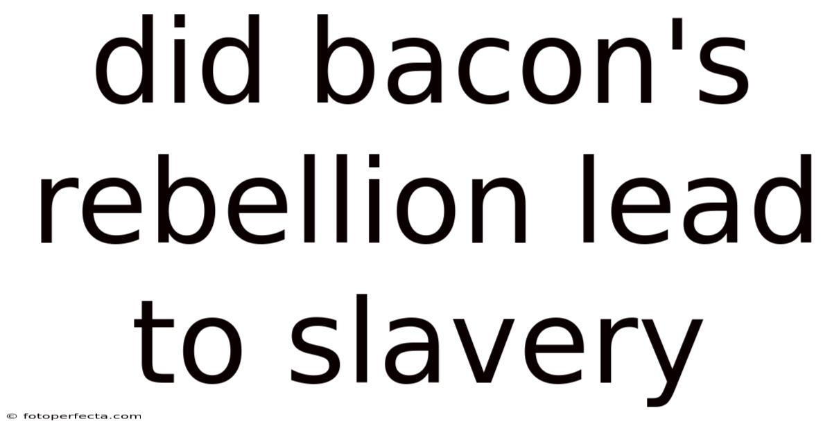 The question of whether Bacon's Rebellion led to slavery does not have a simple yes or no answer. Slavery existed in Virginia before the rebellion, but the event dramatically accelerated its development and transformed it into something more absolute and racially defined. The rebellion's aftermath saw the implementation of stricter slave codes, the solidification of hereditary racial slavery, and the creation of a social order that would endure for generations.
