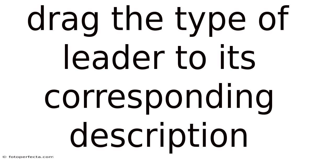 Understanding leadership is not just about identifying who leads but recognizing how they lead. The concept of "dragging the type of leader to its corresponding description" refers to the exercise of matching leadership styles with their defining characteristics. This skill is crucial in fields like education, corporate training, and organizational development, where leaders must adapt their approaches to suit different contexts. By learning to pair leader types with their descriptions, individuals can better analyze leadership effectiveness, improve team dynamics, and even refine their own leadership practices. This article explores the most common leadership types, their descriptions, and how to approach this matching exercise effectively Took long enough..