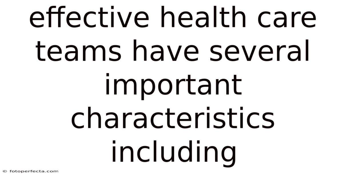 Effective Health Care Teams Have Several Important Characteristics Including