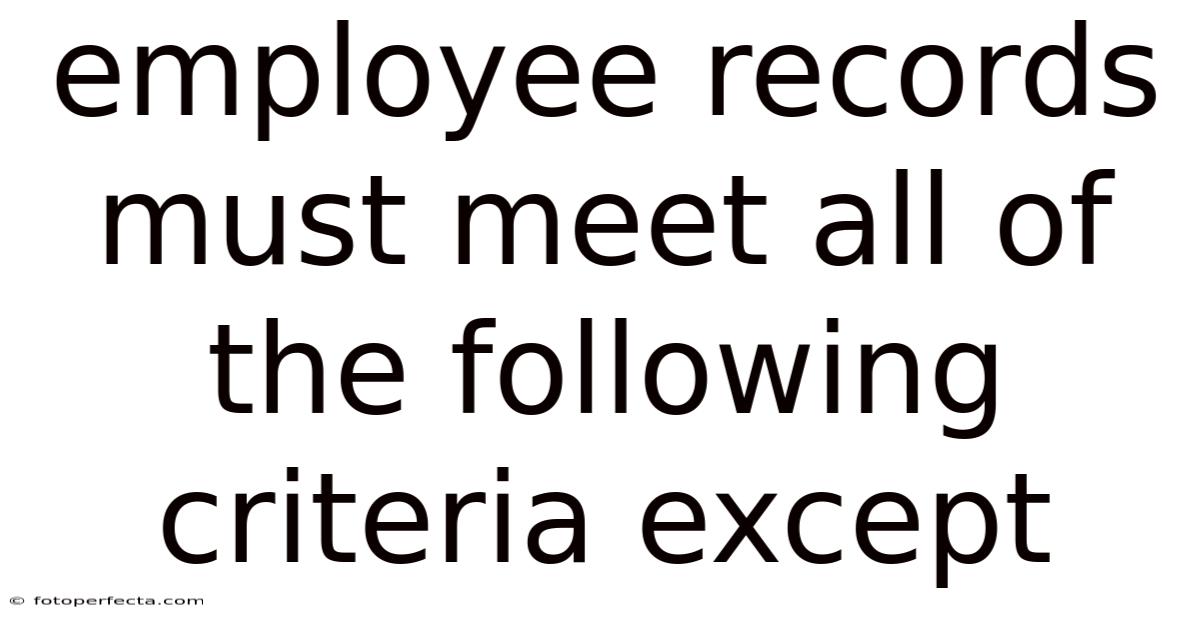 When organizations manage employee records, they must comply with a complex web of legal, regulatory, and best‑practice requirements. These criteria protect employee privacy, ensure accurate payroll processing, and safeguard the company against potential lawsuits. While most standards are non‑negotiable, there is often a misconception about which requirement is not mandatory. This article unpacks the essential criteria that employee records must meet, highlights the one exception that does not belong, and explains why understanding this nuance is critical for HR professionals, managers, and business owners Less friction, more output..