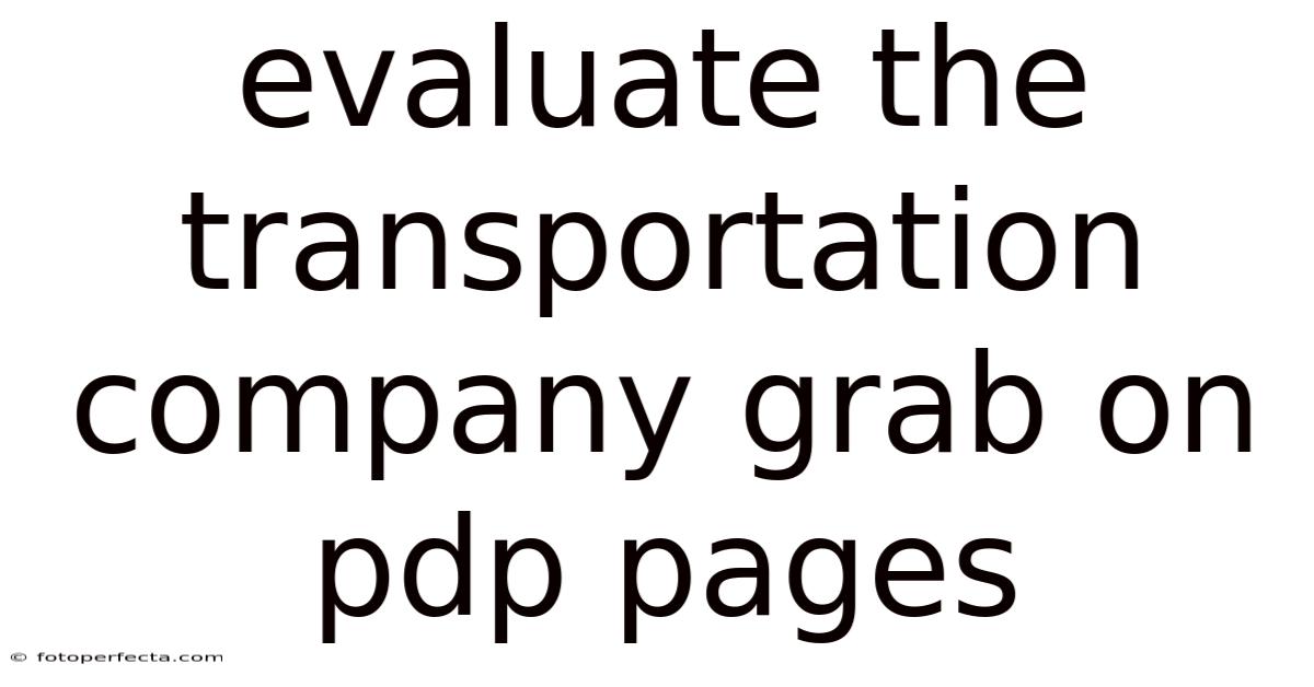 Evaluate The Transportation Company Grab On Pdp Pages