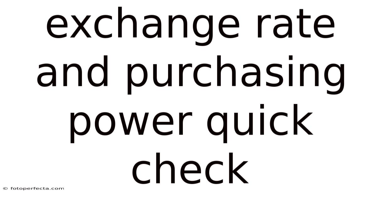 - How does inflation impact the relationship between exchange rate and purchasing power? Inflation is a key driver. If a country experiences high inflation, its currency tends to depreciate against others, reducing its ability to purchase imported goods. Even if the nominal exchange rate remains stable, rising domestic prices erode purchasing power, making a quick check necessary to adjust for inflationary effects.