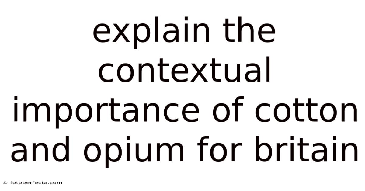 Understanding the contextual importance of cotton and opium for Britain is essential to grasp how these two substances shaped the nation’s economy, society, and global influence during the 18th and 19th centuries. This leads to these two products not only defined key industries but also played critical roles in shaping trade routes, labor systems, and even political decisions. By exploring their significance, we uncover how Britain became a dominant force in global markets while navigating the complexities of their production and consumption That's the part that actually makes a difference..