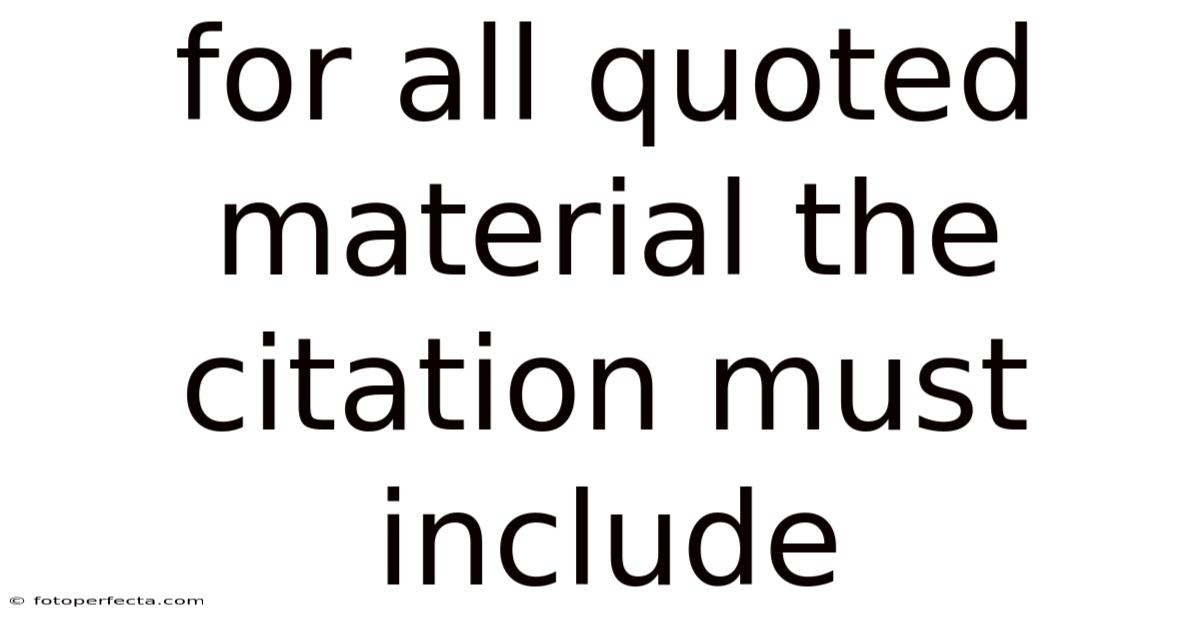 When working with academic writing, researchers quickly learn that for all quoted material the citation must include specific details to ensure credibility and avoid plagiarism. A proper citation not only gives credit to the original author but also allows readers to locate the source for further verification. This article explores the essential components of a citation, common pitfalls, and practical examples that illustrate how to meet the standard requirements consistently.