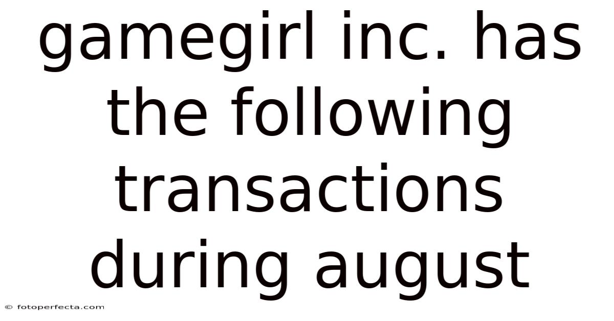 GameGirl Inc. is a fast-growing gaming merchandise company that recently experienced a busy month of operations in August. This article provides a detailed breakdown of the company's financial transactions during that period, offering insight into its revenue streams, expenses, and overall cash flow management. Understanding these transactions is crucial for small business owners, accounting students, and anyone interested in the financial dynamics of a retail business That's the part that actually makes a difference. No workaround needed..