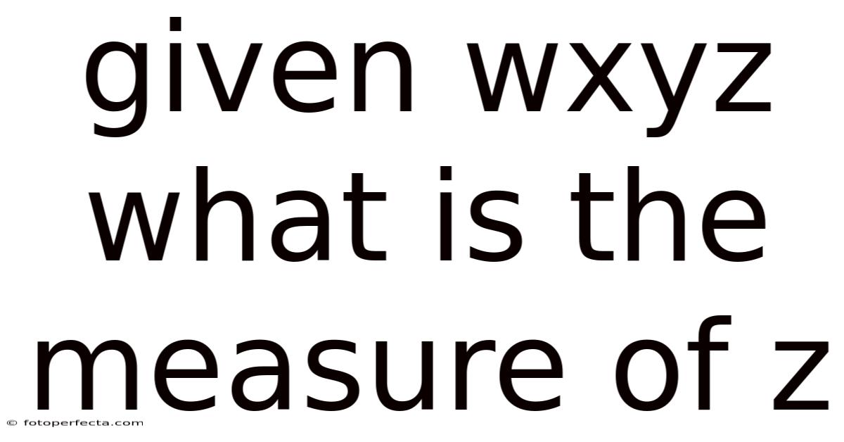 Understanding the measure of a variable in mathematical expressions requires a clear grasp of the context and the symbols involved. Plus, when we encounter the expression given wxyz what is the measure of z, we are diving into a scenario where multiple variables interact, and the goal is to determine the value or significance of z. This question is not just about numbers; it’s about interpreting relationships and applying logical reasoning to uncover hidden insights. Let’s explore this topic in depth, ensuring we break down each component with clarity and precision Small thing, real impact. Nothing fancy..