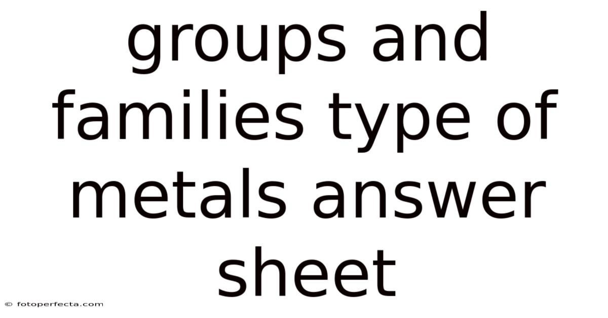 Groups and Families of Metals: A Complete Answer Sheet Guide