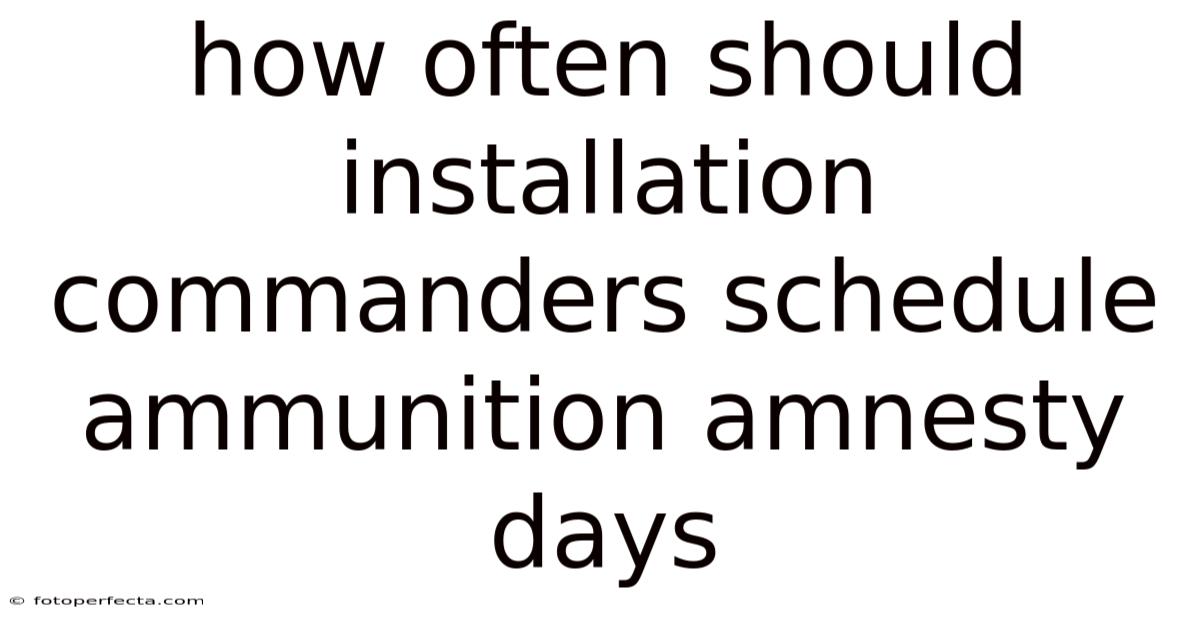 Based on best practices and the factors above, installation commanders should consider implementing amnesty days on a schedule ranging from quarterly (every three months) to annually (once a year). Here's a breakdown of common approaches and their rationale: