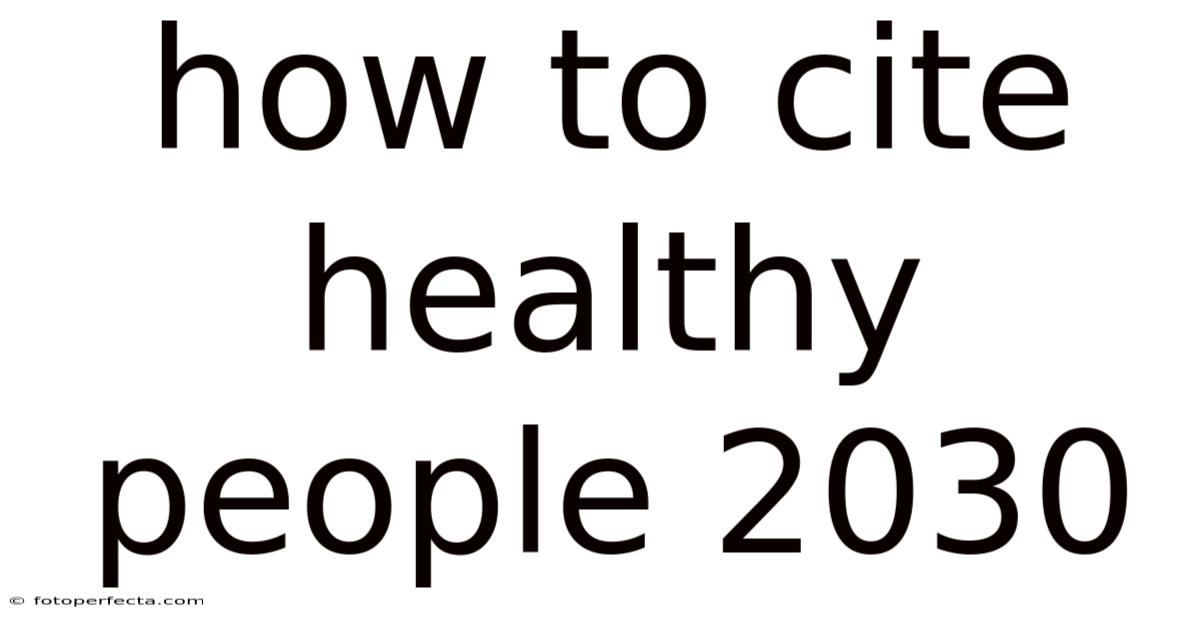 How to cite Healthy People 2030 correctly is a practical skill for students, researchers, and public health professionals who want to reference national health objectives with precision and credibility. On the flip side, as the United States’ decade-long framework for improving population health, Healthy People 2030 provides measurable goals, evidence-based interventions, and data standards that shape policy, education, and community programs. Knowing how to cite it in APA, MLA, Chicago, and Vancouver styles ensures that readers can locate the original source, strengthens the integrity of your work, and aligns your writing with professional expectations in public health and medicine Worth keeping that in mind..