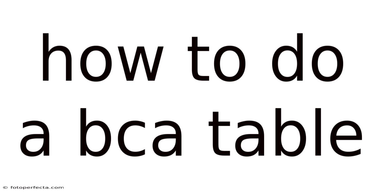 Step-by-Step Procedure for Preparing a BCA Table