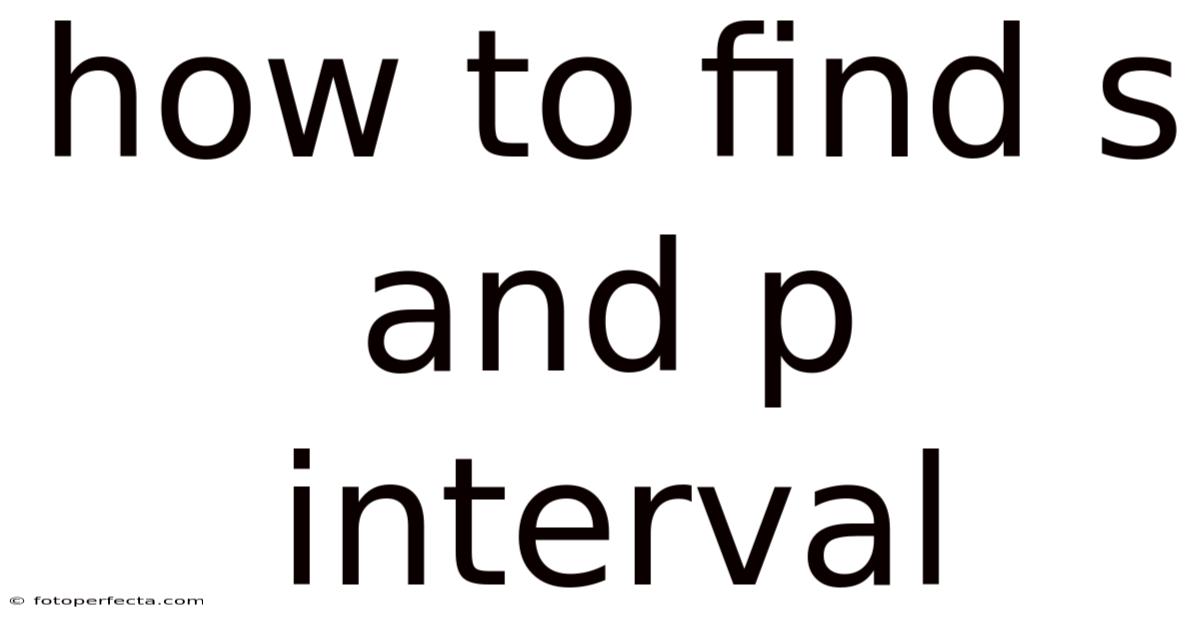 Understanding how to find S and P interval is essential for anyone working with statistical data, whether you are a student, researcher, or data analyst. So the “S” refers to the sample standard deviation, while “P” denotes a population proportion. Both metrics are commonly used to build confidence intervals that reveal the range within which the true parameter likely falls. This article walks you through the complete process, from gathering data to interpreting the final interval, using clear steps, practical examples, and common pitfalls to avoid Practical, not theoretical..
