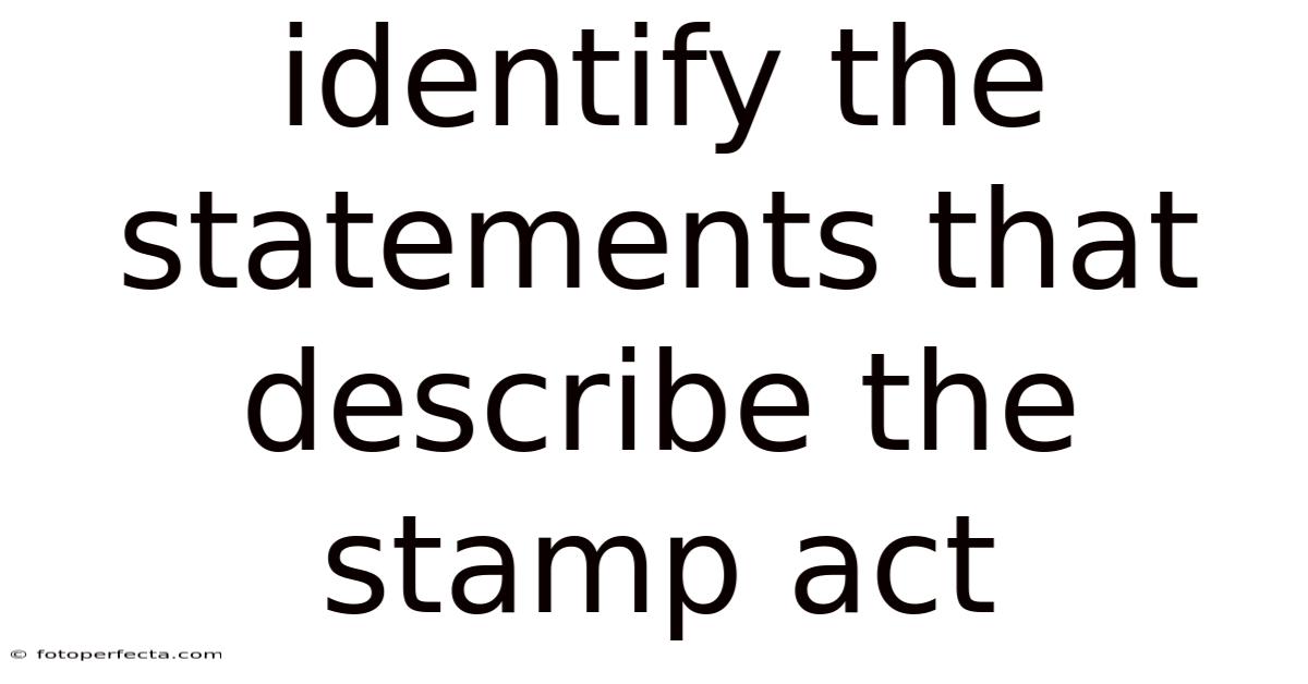 The Stamp Act of 1765 stands as one of the most contentious and consequential pieces of legislation in the lead-up to the American Revolution. Understanding the Stamp Act requires examining its origins, its immediate effects, and its long-term implications for colonial-British relations. Enacted by the British Parliament, this law imposed a direct tax on the American colonies, sparking widespread outrage and uniting disparate colonial interests against British rule. Below, we identify and analyze key statements that describe this central historical event Worth knowing..