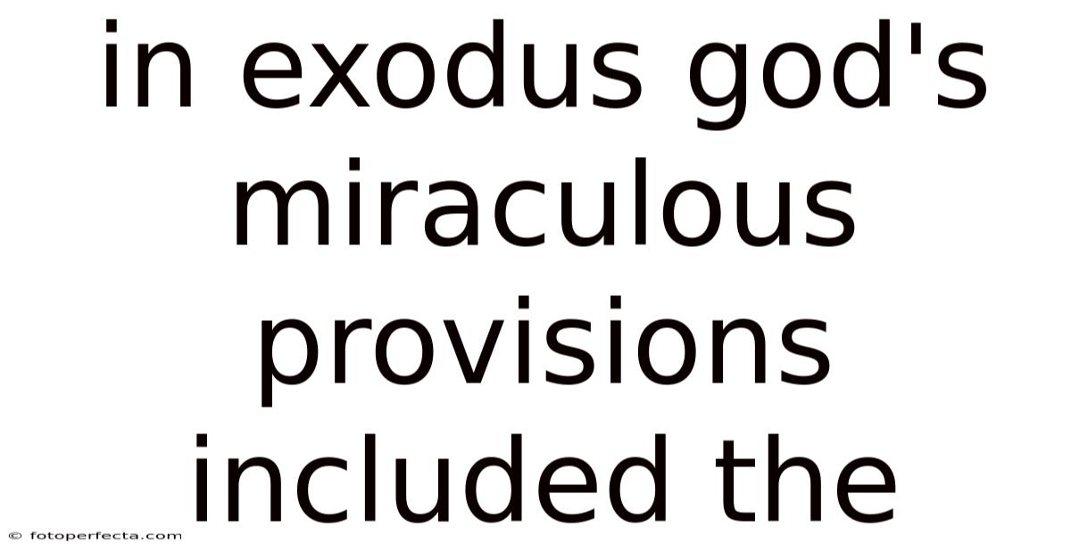 In Exodus God's Miraculous Provisions Included the Manna, Quail, and Water from Rock