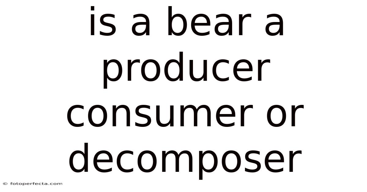 In the detailed web of life, every organism plays a specific role in the flow of energy and nutrients through an ecosystem. That's why consumers, including herbivores, carnivores, and omnivores, obtain energy by eating other organisms. Here's the thing — when considering the role of a bear in this ecological framework, the question arises: is a bear a producer, consumer, or decomposer? Decomposers, like fungi and bacteria, break down dead organic matter, returning nutrients to the soil. Which means producers, such as plants and algae, create their own food through photosynthesis. These roles are typically categorized into three main groups: producers, consumers, and decomposers. The answer lies in understanding the bear's diet and behavior within its environment It's one of those things that adds up..