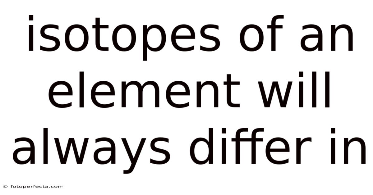 Introduction The phrase isotopes of an element will always differ in is more than a textbook slogan; it encapsulates a core concept in chemistry and physics. When we speak of isotopes, we refer to atoms that share the same chemical identity but possess different masses because of differing neutron counts. This difference is the key driver behind many natural phenomena and engineered solutions, ranging from radiocarbon dating to medical imaging. In the sections that follow, we will unpack the mechanics behind this variation, explore its implications, and answer common questions that arise when studying isotopes.