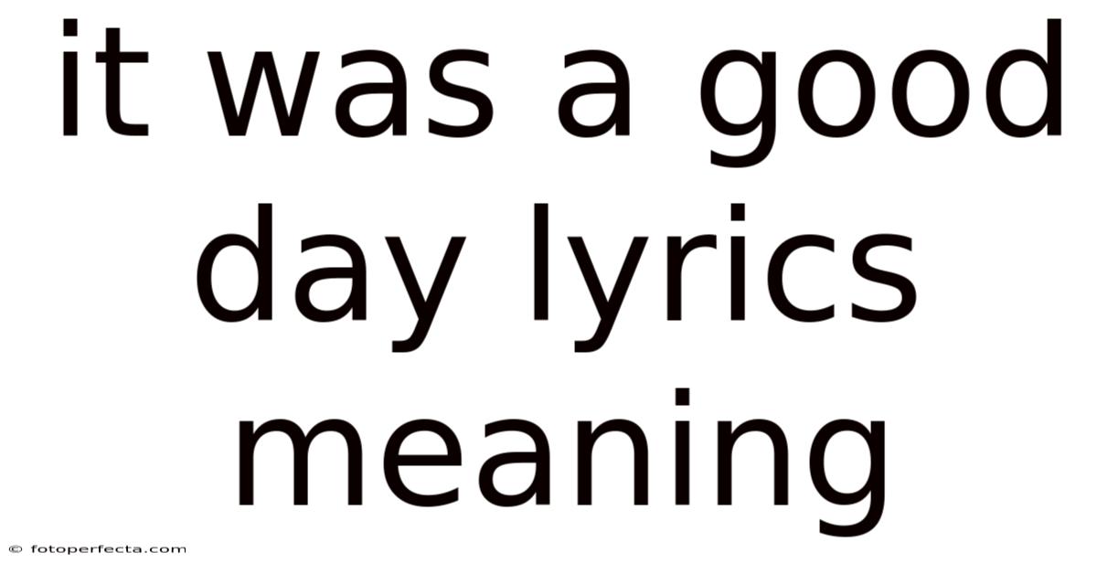 The song's enduring popularity is a testament to its powerful message and timeless relevance. It reminds us that even in the toughest environments, moments of joy and normalcy are possible and should be cherished. It Was a Good Day is more than just a hip-hop classic; it is a poignant reflection on the human experience and the small victories that make life worth living That alone is useful..
