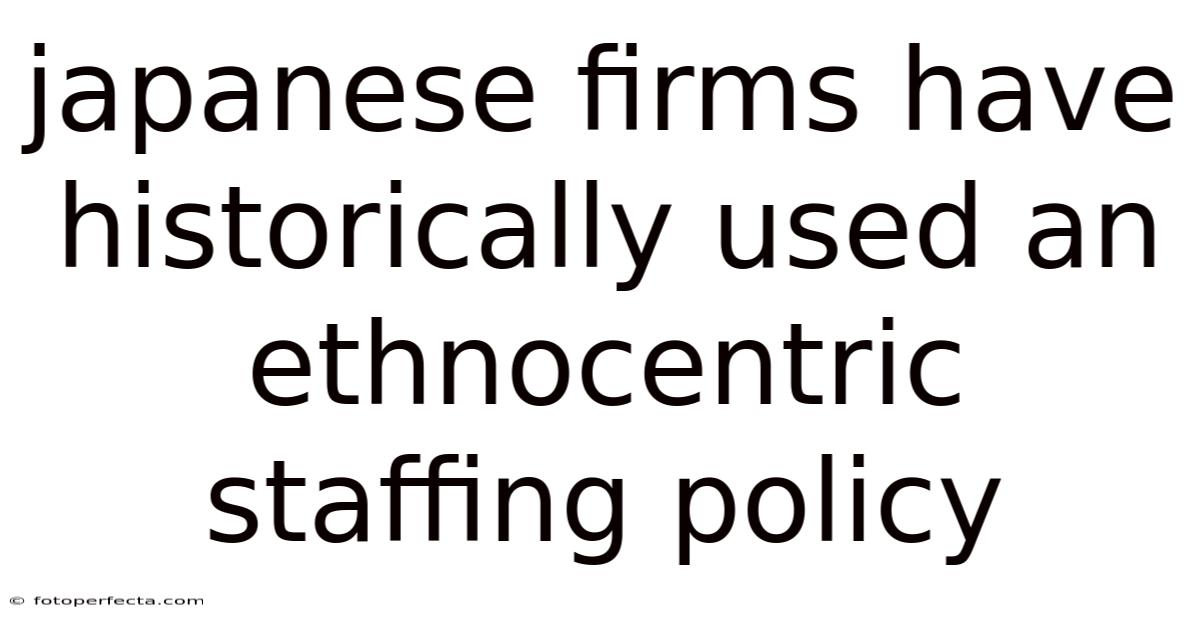 Japanese firms have long been recognized for their distinctive approach to international expansion, and a central element of that strategy is the ethnocentric staffing policy. This model—where key managerial positions abroad are filled by employees from the home country—has shaped the way Japanese multinationals (MNEs) enter new markets, transfer technology, and maintain corporate culture across borders. Understanding why Japanese firms historically favored ethnocentric staffing, how it has evolved, and what implications it holds for today’s global business environment provides valuable insight for managers, scholars, and anyone interested in cross‑cultural management And that's really what it comes down to..
