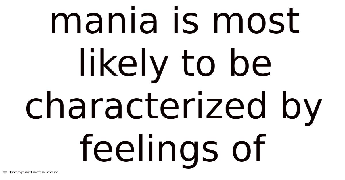 Mania is most likely to be characterized by feelings of elevated mood, heightened energy, and racing thoughts, a constellation of symptoms that can dramatically alter a person’s perception of reality and behavior. Think about it: while many people associate mania solely with euphoric excitement, the emotional landscape of a manic episode is far more complex, encompassing irritability, grandiosity, and sometimes even fear. This article gets into the core feelings that define mania, explains the underlying neurobiology, outlines how to recognize the signs, and offers practical steps for management and support And that's really what it comes down to..