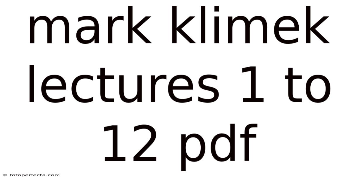 The Mark Klimek Lectures 1 to 12 PDF series spans a broad spectrum of subjects. Below is a concise outline of the primary themes addressed in each lecture: