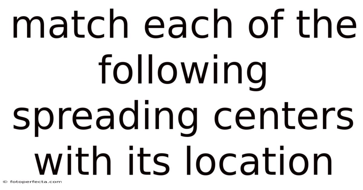 A spreading center is a geological location where two tectonic plates move apart, allowing molten rock from the mantle to rise and solidify into new crust. Matching spreading centers with their locations is essential for understanding geological activity, such as volcanic eruptions, earthquakes, and the formation of ocean basins. The location of these centers is determined by the movement of tectonic plates, which are driven by mantle convection currents. Here's one way to look at it: the Mid-Atlantic Ridge, a well-known spreading center, is situated in the Atlantic Ocean, while the East African Rift is a continental spreading center located in East Africa. Worth adding: spreading centers are typically found along mid-ocean ridges or continental rifts, where the Earth’s lithosphere is being actively stretched. Still, this process, known as seafloor spreading, is fundamental to the theory of plate tectonics. These examples illustrate how spreading centers are distributed across the globe, each tied to specific tectonic boundaries Nothing fancy..