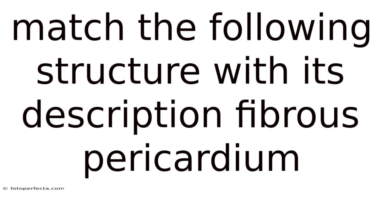 The fibrous pericardium serves as the tough, outermost layer encasing the heart. This essential structure provides critical protection and anchoring for the vital organ within the thoracic cavity. Understanding its precise anatomy and function is fundamental to comprehending cardiac physiology and pathology Surprisingly effective..