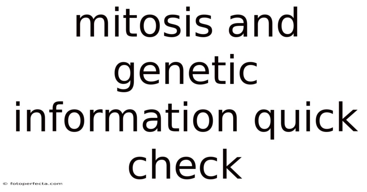 Mitosis and genetic information quick check are essential concepts for anyone studying cell biology, genetics, or preparing for exams that test cellular division. Also, this article provides a clear, step‑by‑step explanation of how mitosis preserves genetic material, why accurate transmission matters, and how you can assess your understanding with a quick self‑test. By the end, you will have a solid grasp of the process, the checkpoints that safeguard DNA integrity, and practical ways to reinforce your knowledge.