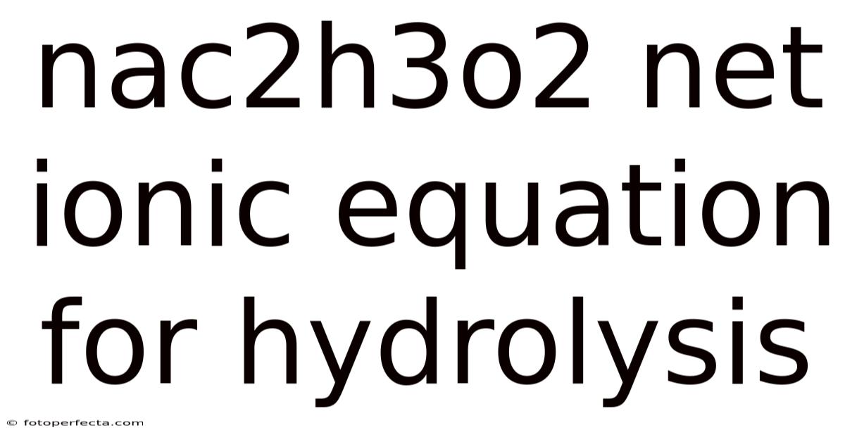 The nac2h3o2 net ionic equation for hydrolysis reveals how sodium acetate interacts with water to form a mildly basic solution, a fundamental concept in acid-base chemistry that bridges theoretical equilibrium principles with real-world laboratory behavior. When sodium acetate dissolves in water, it undergoes a hydrolysis reaction where only the acetate ion participates in proton transfer, leaving sodium ions as inactive spectators. Understanding this process not only clarifies why salt solutions can alter pH but also strengthens your grasp of conjugate acid-base pairs, equilibrium shifts, and net ionic notation. By breaking down each step and examining the underlying chemical principles, you will gain a clear, practical understanding of how weak acid salts behave in aqueous environments The details matter here. No workaround needed..