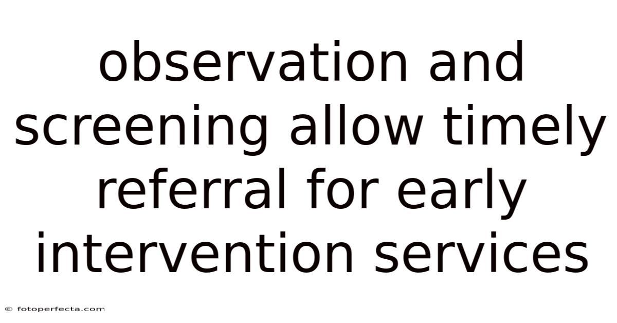 Early intervention is a powerful tool in shaping better outcomes for individuals facing developmental or health challenges. At the heart of this process lie two critical components: observation and screening. That said, these steps are not just procedural—they are vital for ensuring that those who need support are identified and referred in time. By exploring how observation and screening work together, we can better appreciate their role in fostering positive change and improving quality of life Took long enough..