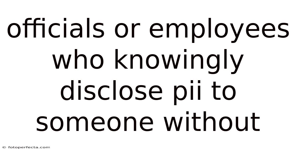 In an era where data is currency, the unauthorized disclosure of Personally Identifiable Information (PII) by officials or employees poses a significant threat to privacy and security. Whether intentional or negligent, such breaches can lead to catastrophic consequences for individuals, organizations, and public trust. This article breaks down the legal, ethical, and operational ramifications of knowingly sharing PII without authorization, examines real-world cases, and outlines strategies to mitigate risks Not complicated — just consistent..