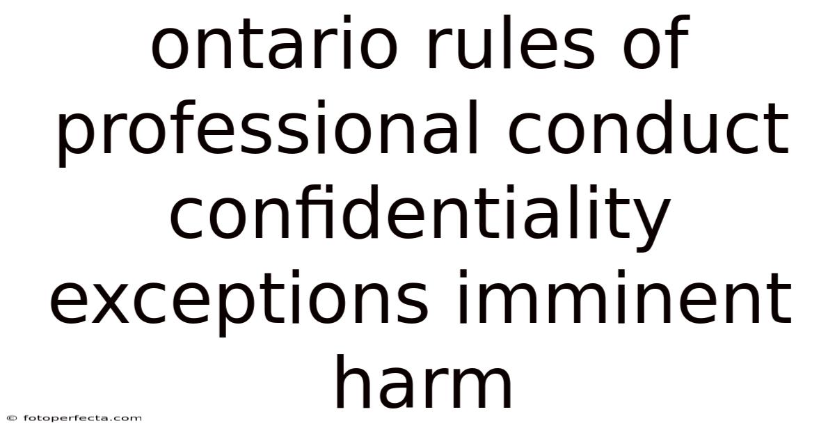 The short version: the Ontario rules of professional conduct provide a vital framework for managing confidentiality and imminent harm. By understanding these concepts, individuals can figure out their responsibilities with greater confidence and clarity. This article aims to equip readers with the knowledge they need to act ethically while upholding the principles outlined in these essential guidelines Simple as that..