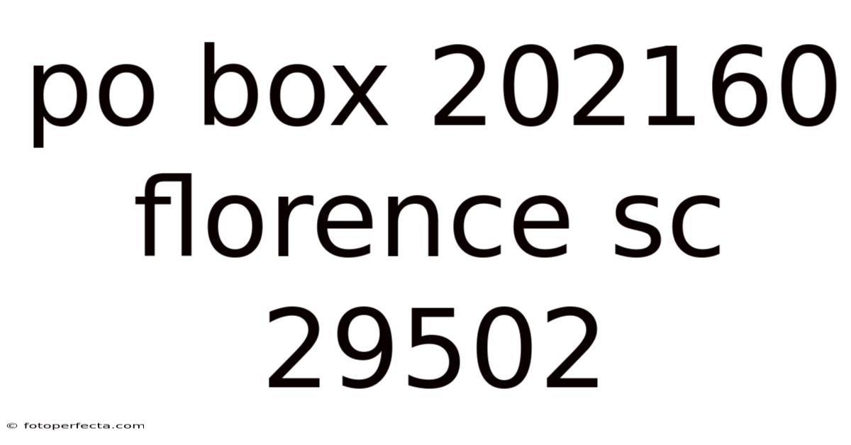 Whether PO Box 202160 Florence SC 29502 is used by a major insurance provider, a government agency, or a private business, it represents a vital link in the chain of professional communication. By understanding the logistics of the USPS system and the strategic importance of the Florence, SC hub, you can ensure your correspondence is handled efficiently Still holds up..