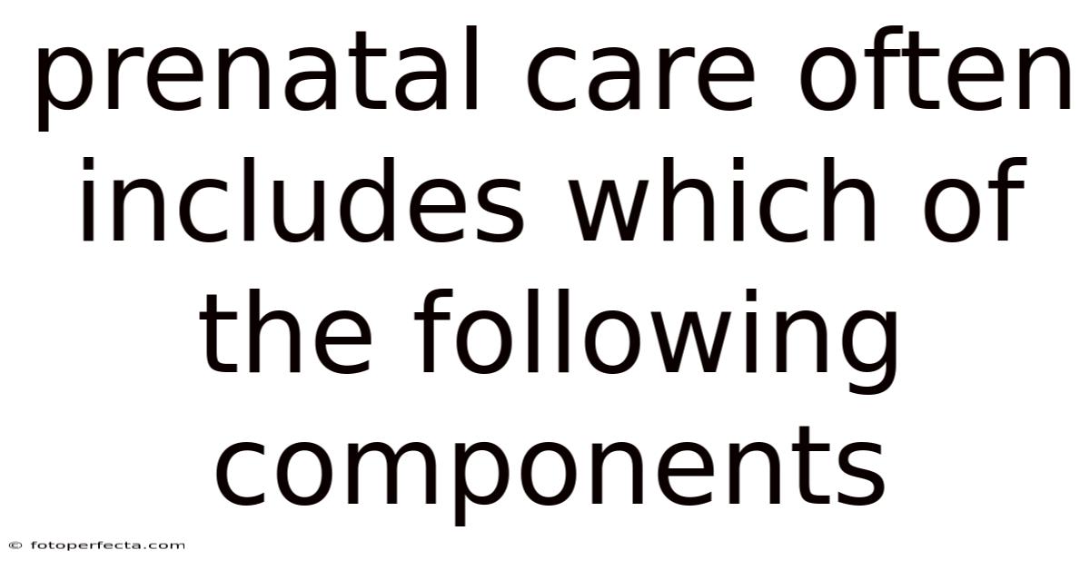 Prenatal care, also known as antenatal care, is the proactive healthcare a woman receives during pregnancy to ensure the best possible outcomes for both mother and baby. Here's the thing — it is a cornerstone of maternal and child health, moving beyond mere illness treatment to a holistic model of support, monitoring, and education. That said, **Prenatal care often includes which of the following components? ** The answer encompasses a coordinated suite of medical, nutritional, psychological, and educational interventions designed to deal with the profound physical and emotional changes of pregnancy. This complete walkthrough breaks down these essential components, explaining their purpose and importance in building a healthy foundation for childbirth and beyond.